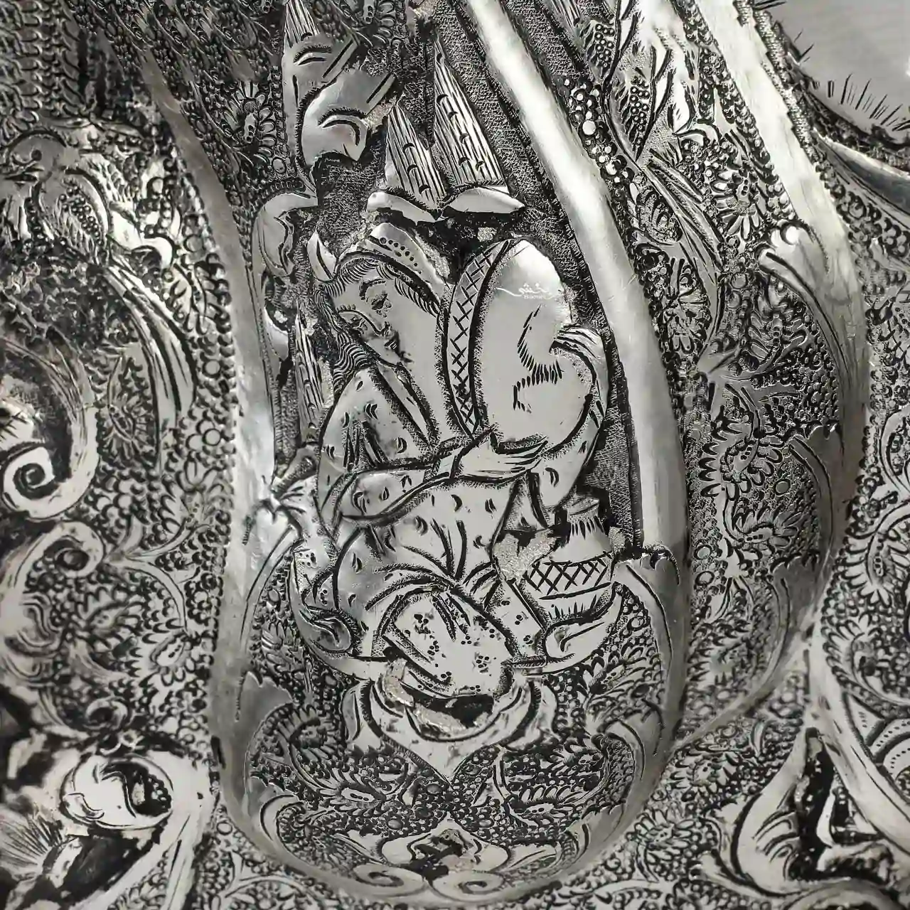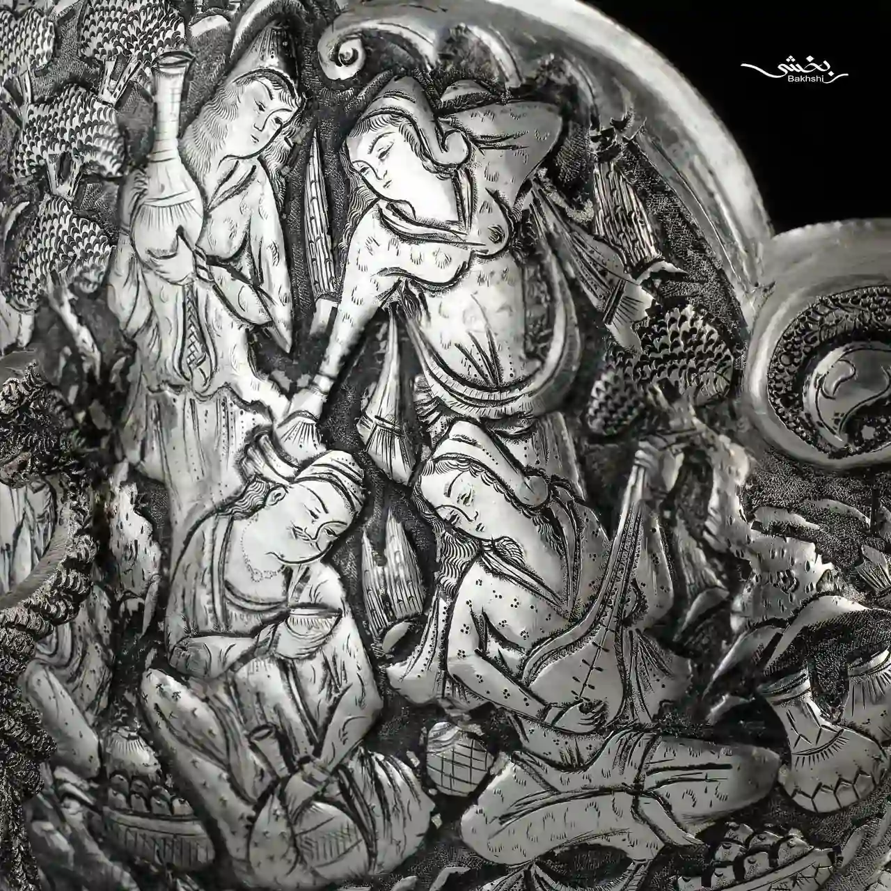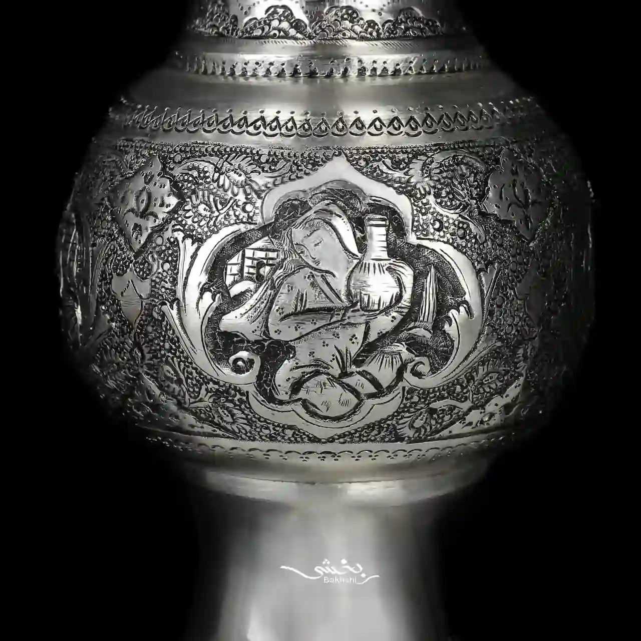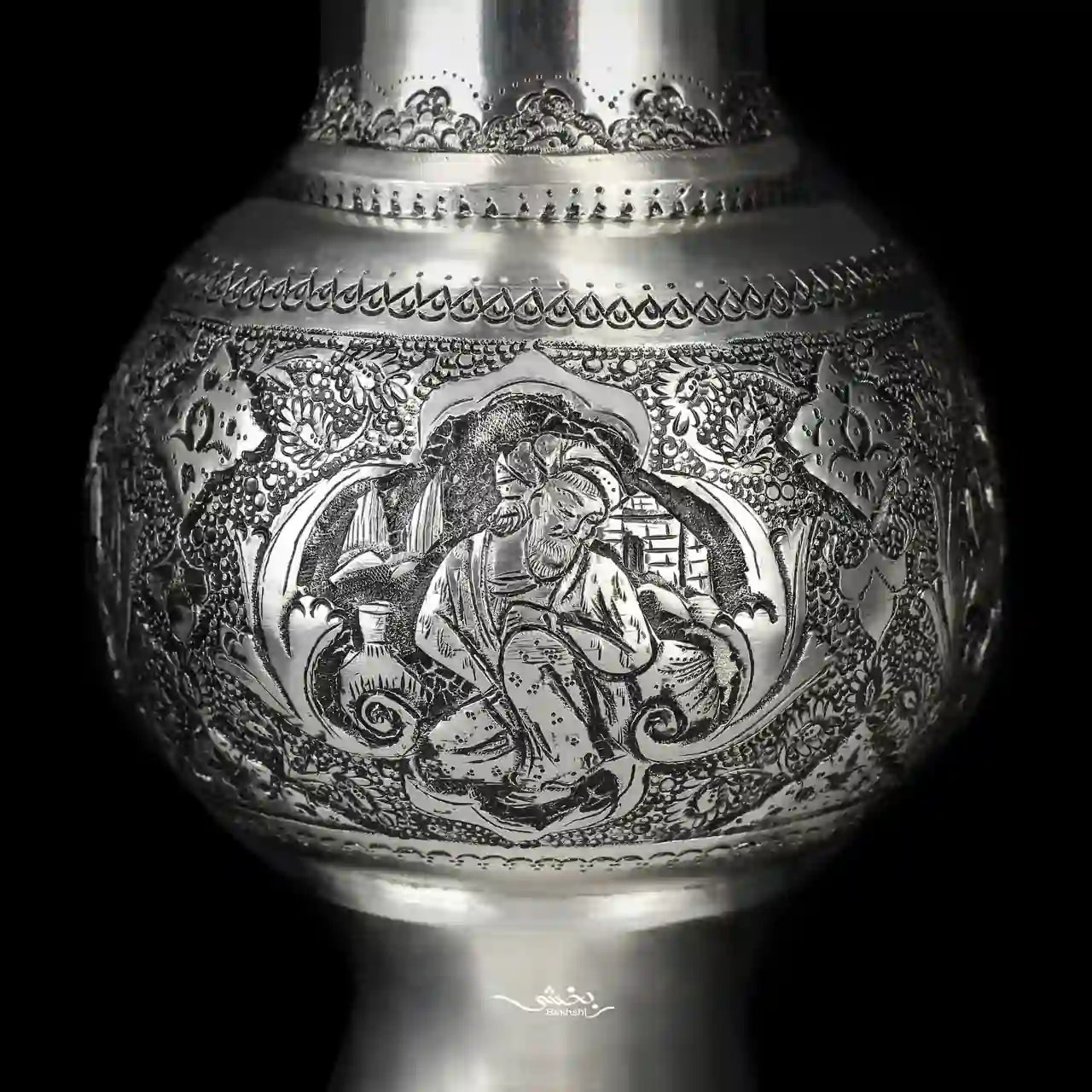 کشکول دسته‌دار نقره قلم مینیاتور – نقره بخشی