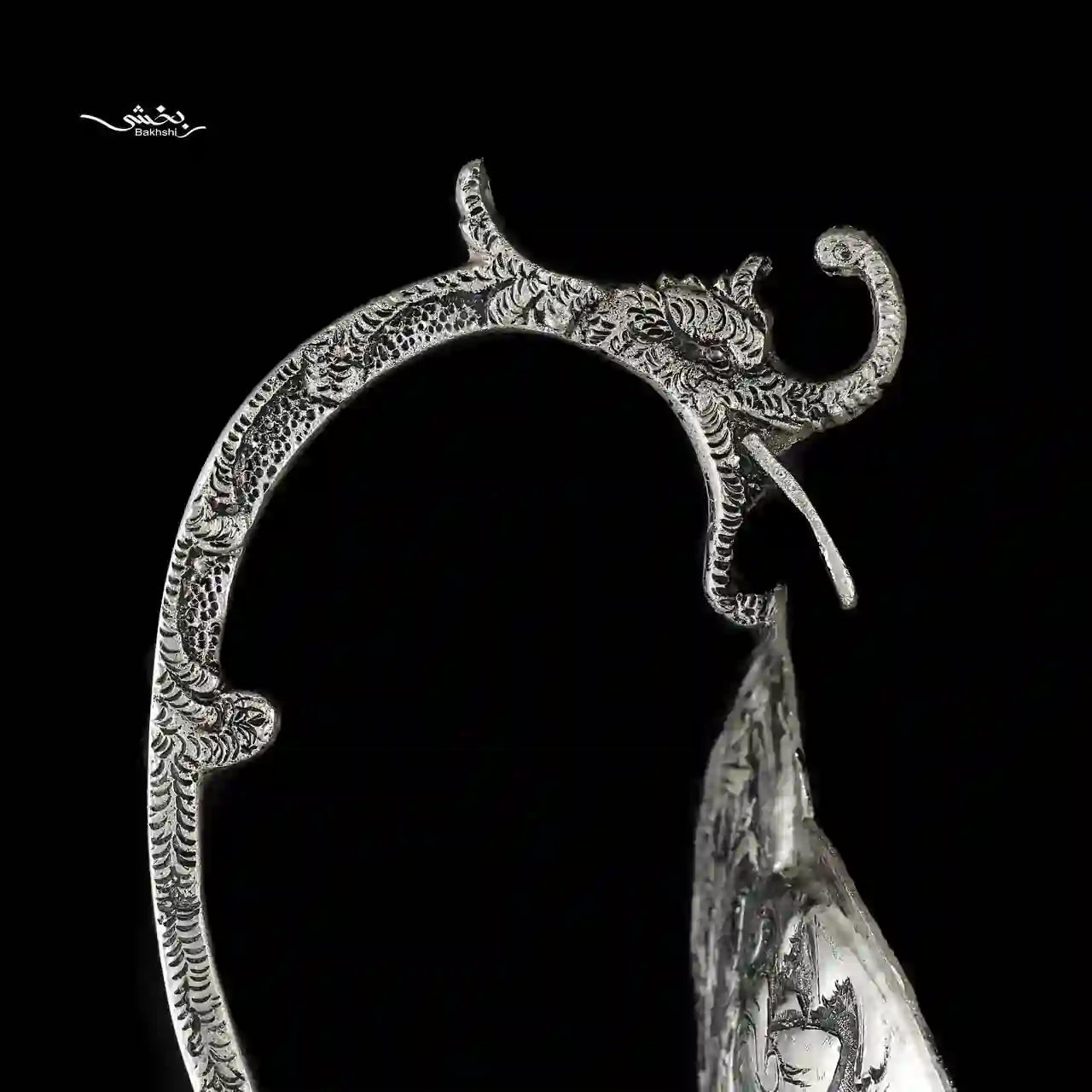 کشکول دسته‌دار نقره قلم مینیاتور، ساخته شده از ۵۵۷۱ گرم نقره با عیار ۸۴٪ و با طول ۶۶ سانتیمتر، عرض ۳۹ سانتیمتر و ارتفاع ۶۵ سانتیمتر، اثری شاخص و ارزشمند برای دکوراسیون‌های فاخر، فضاهای رسمی و ویترین‌های خاص است. این کشکول علاوه بر کاربرد تزئینی، گزینه‌ای مناسب برای کلکسیون‌های هنری و هدیه‌های خاص بوده و همراه با بسته‌بندی کادویی 🎁 در فروشگاه و سایت نقره بخشی عرضه می‌شود.