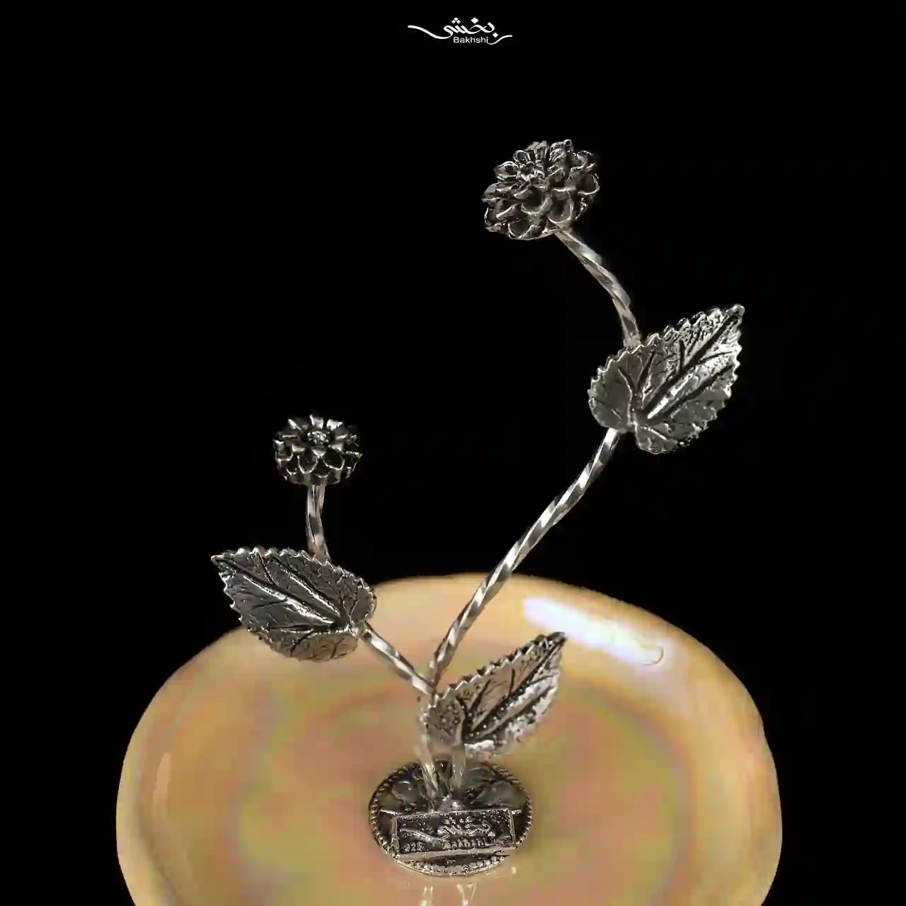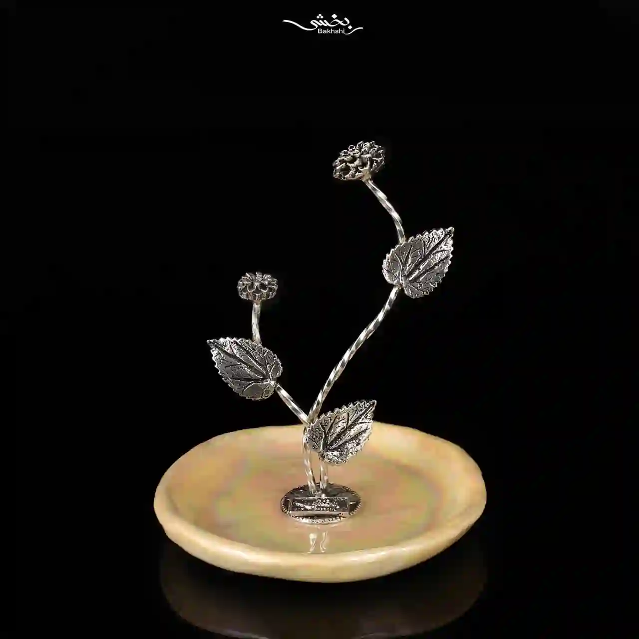 بشقاب گل درمیان سرامیک و نقره کرمی نقره بخشی
